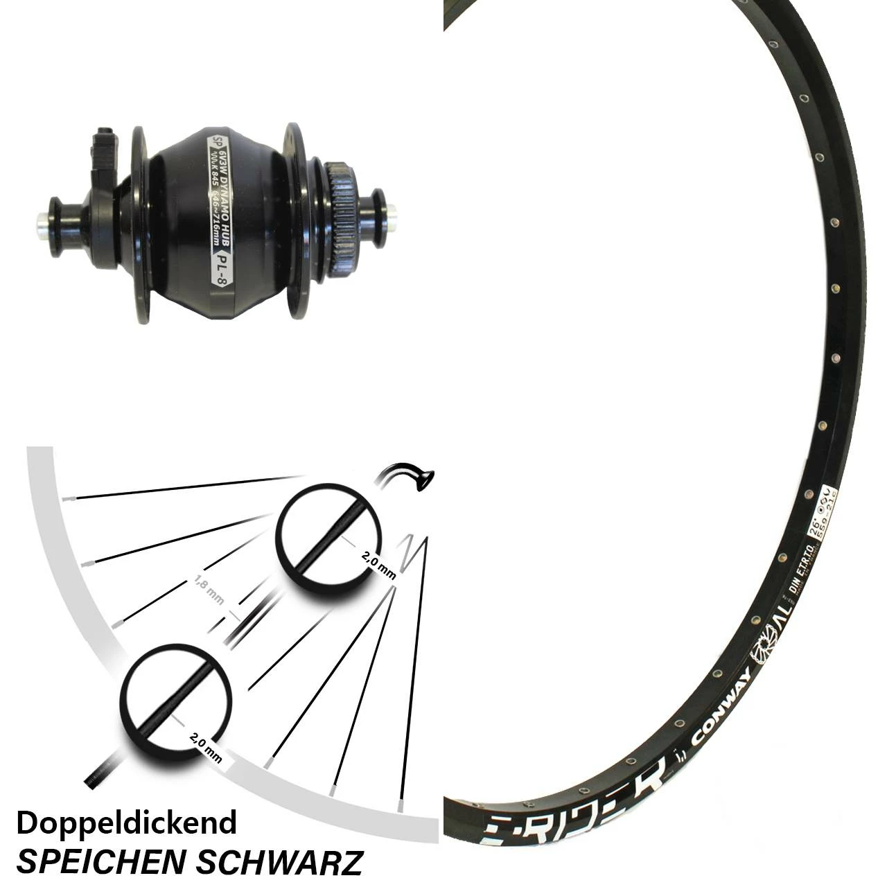 Vorderrad Fahrrad 26 Zoll Mach 1 Magma schwarz Shutter PL8 Nabendynamo für Scheibenbremse mit Doppeldickendspeichen