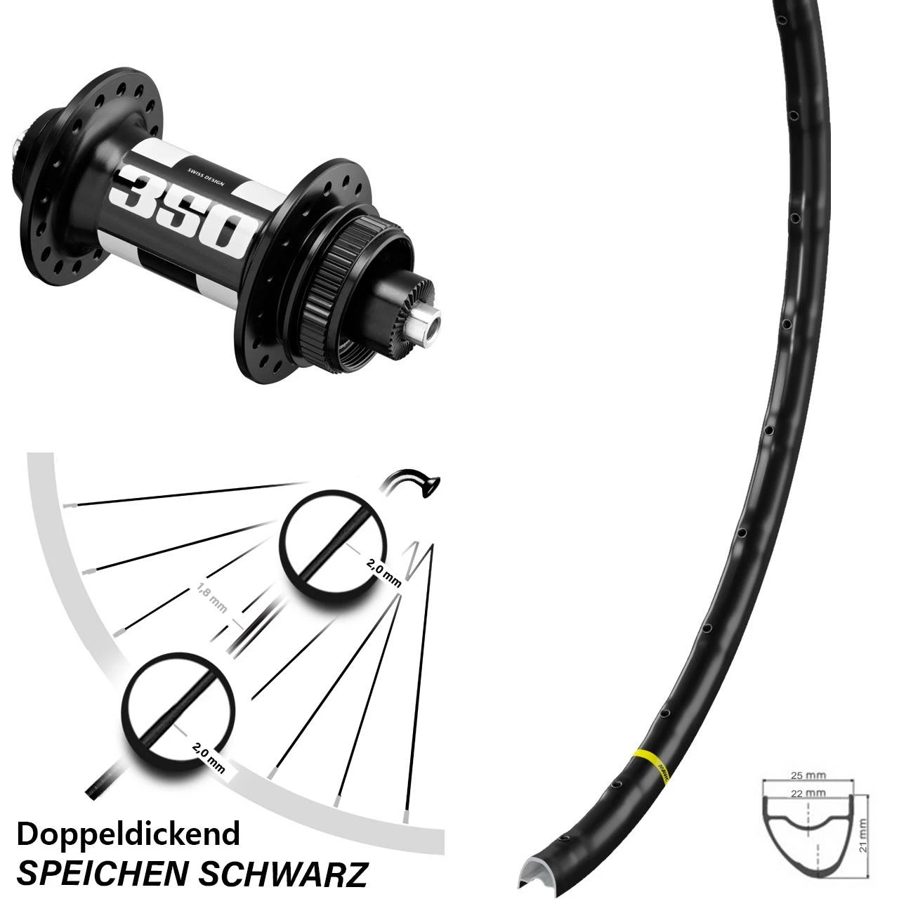 Technische Daten Vorderrad Mavic A 1022 schwarz mit Nabe DT Swiss 350 Disc Centerlock Hohlachse 5/100