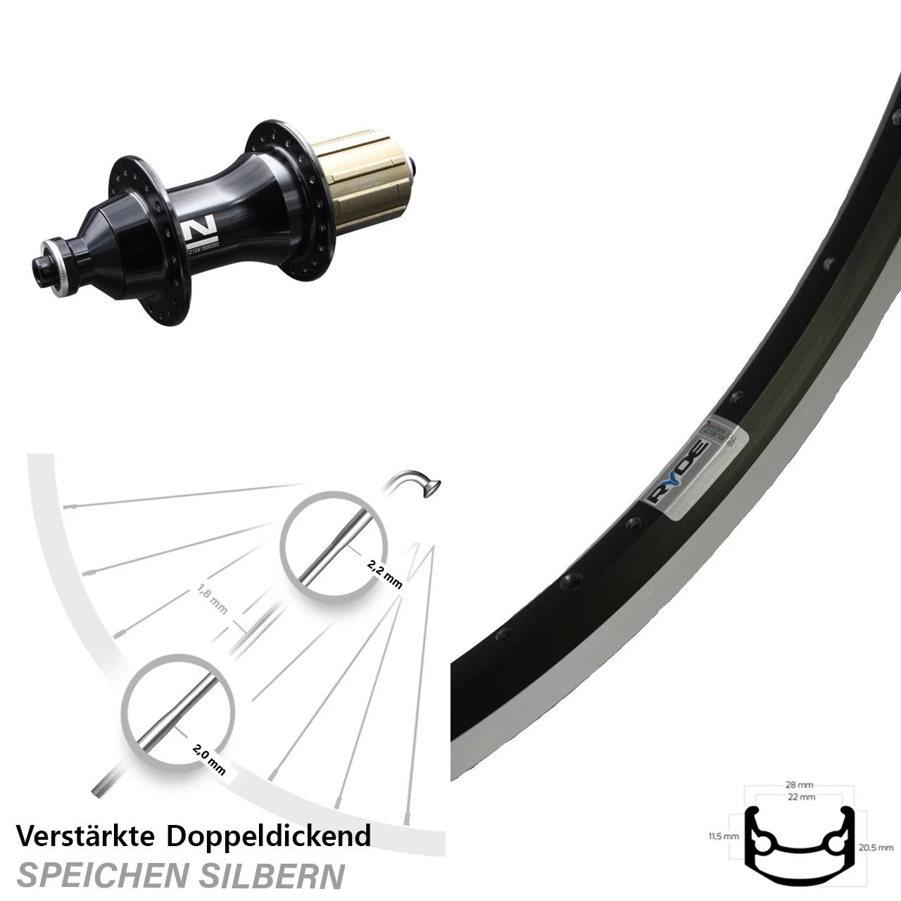- Felge MaĂe: Höhe 20,5 mm / Breite 28 mm