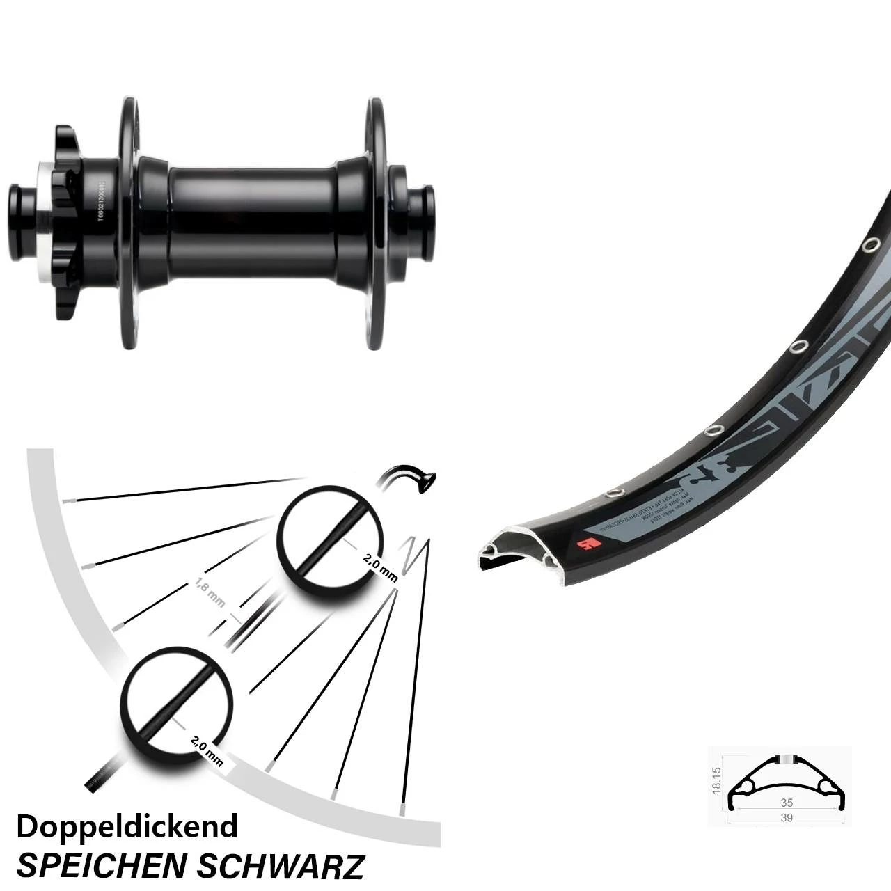 Technische Daten Vorderrad Rodi TRYP 35 schwarz mit Nabe Novatec D341-B15 Boost schwarz