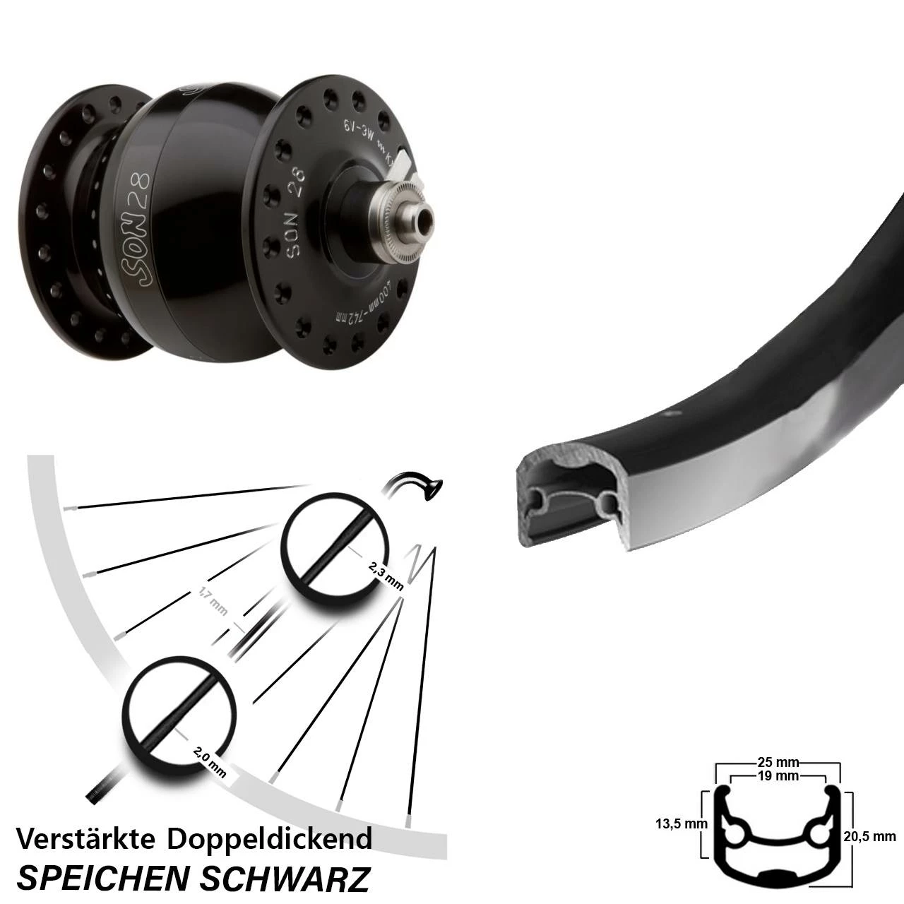 - Nabendynamo: SON 28 schwarz – besonders leichtlĂ€ufig