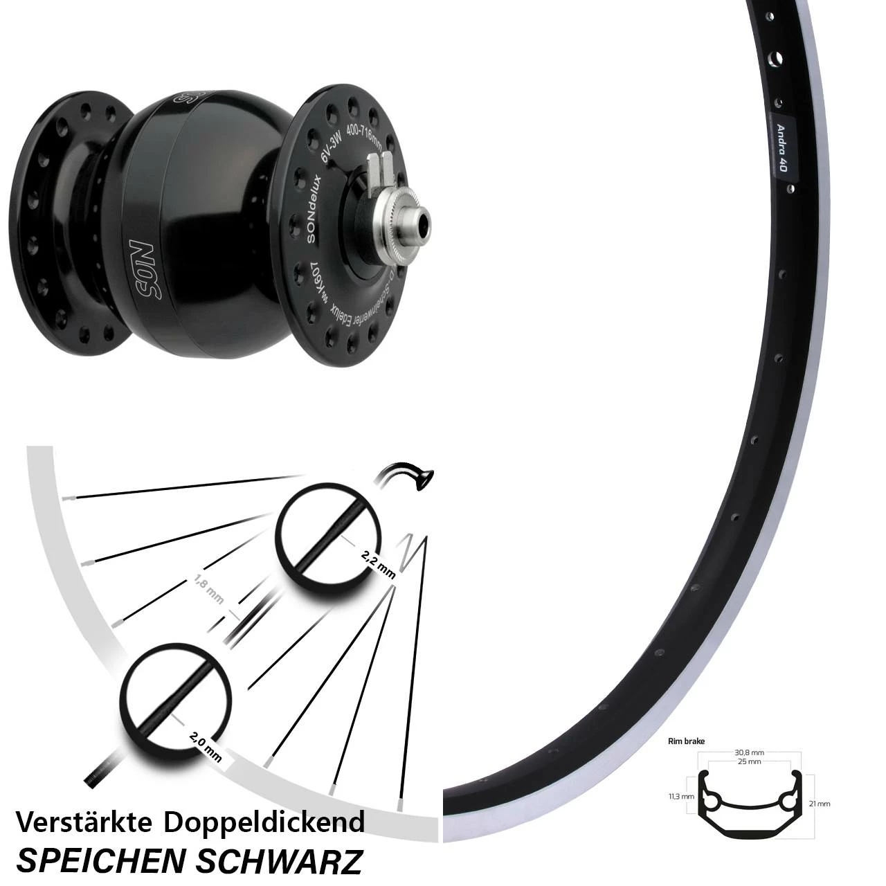 Ryde Andra 40 28-29 Zoll Vorderrad Nabendynamo mit Son delux Wide Body mit verstÀrkten Doppeldickendspeichen