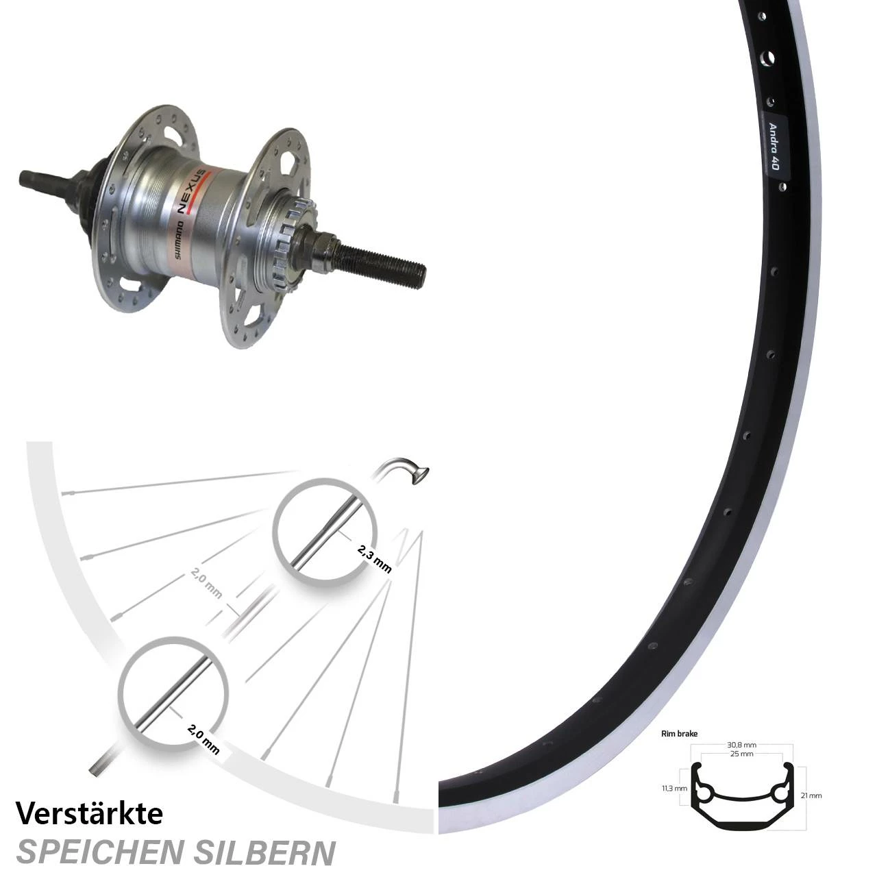 Produktbeschreibung Ryde Andra 40 Hinterrad 26 Zoll Shimano Nexus 3 Gang für Rollenbremse