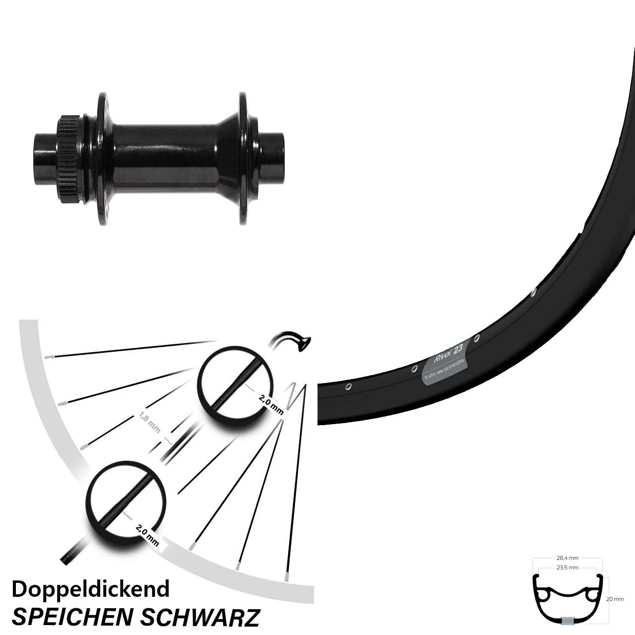 Technische Daten Vorderrad Ryde Rival 23 Disc schwarz mit Nabe Formula schwarz Disc Centerlock Steckachse 15 mm