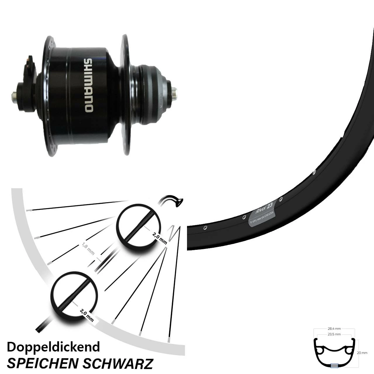 mit Reifenbreite 37-64 mm - Nabendynamo: Shimano DH-3D72 schwarz – besonders leichtläufig