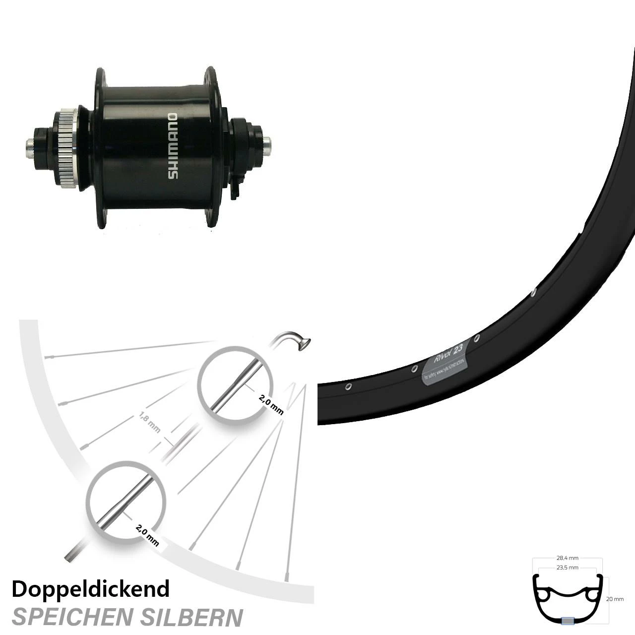 - Vorderrad 28 Zoll, 29 Zoll Ryde Rival 23 schwarz mit Nabendynamo Shimano DH-UR700 schwarz