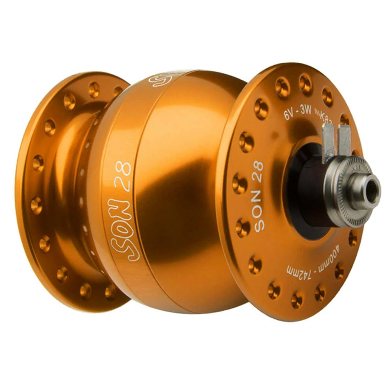 Son 28 Nabendynamo Felgenbremse Hohlachse orange eloxiert