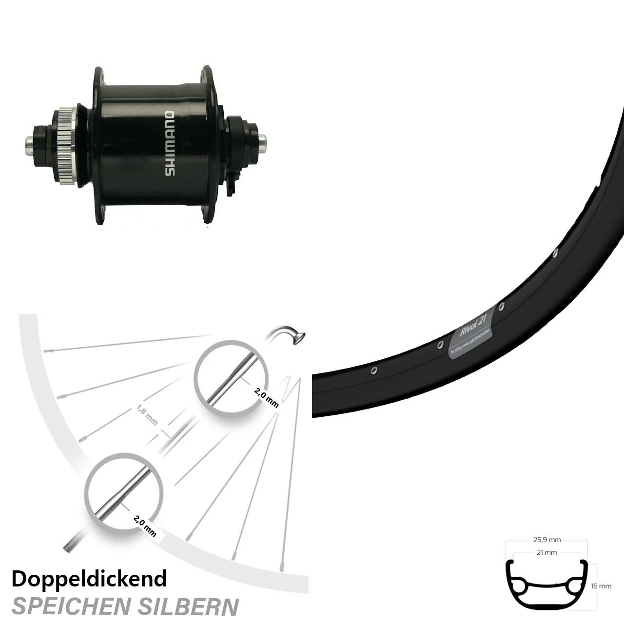 - Vorderrad 28 Zoll, 29 Zoll Ryde Rival 21 schwarz mit Nabendynamo Shimano DH-UR700 schwarz