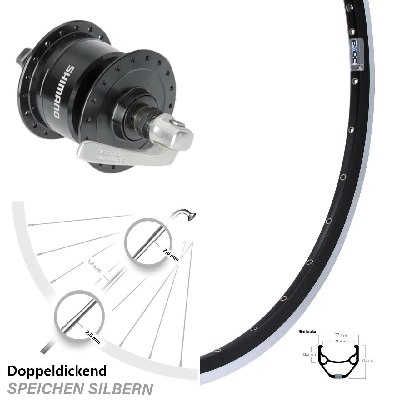Technische Daten vorderes Laufrad Ryde ZAC 421 Felgenbremse schwarz & Nabendynamo Shimano DH-3N72 schwarz