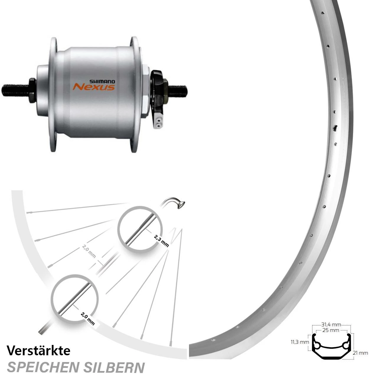 - Vorderrad 24 Zoll Ryde Andra 40 silbern mit Nabendynamo Shimano Nexus DH-C3000-3N silbern