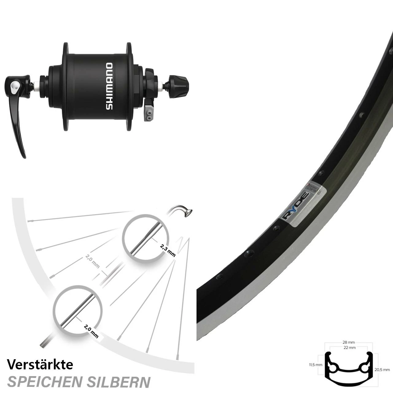 Technische Daten vorderes Laufrad Ryde Andra 35 Felgenbremse schwarz & Nabendynamo Shimano DH-T4000-1N schwarz