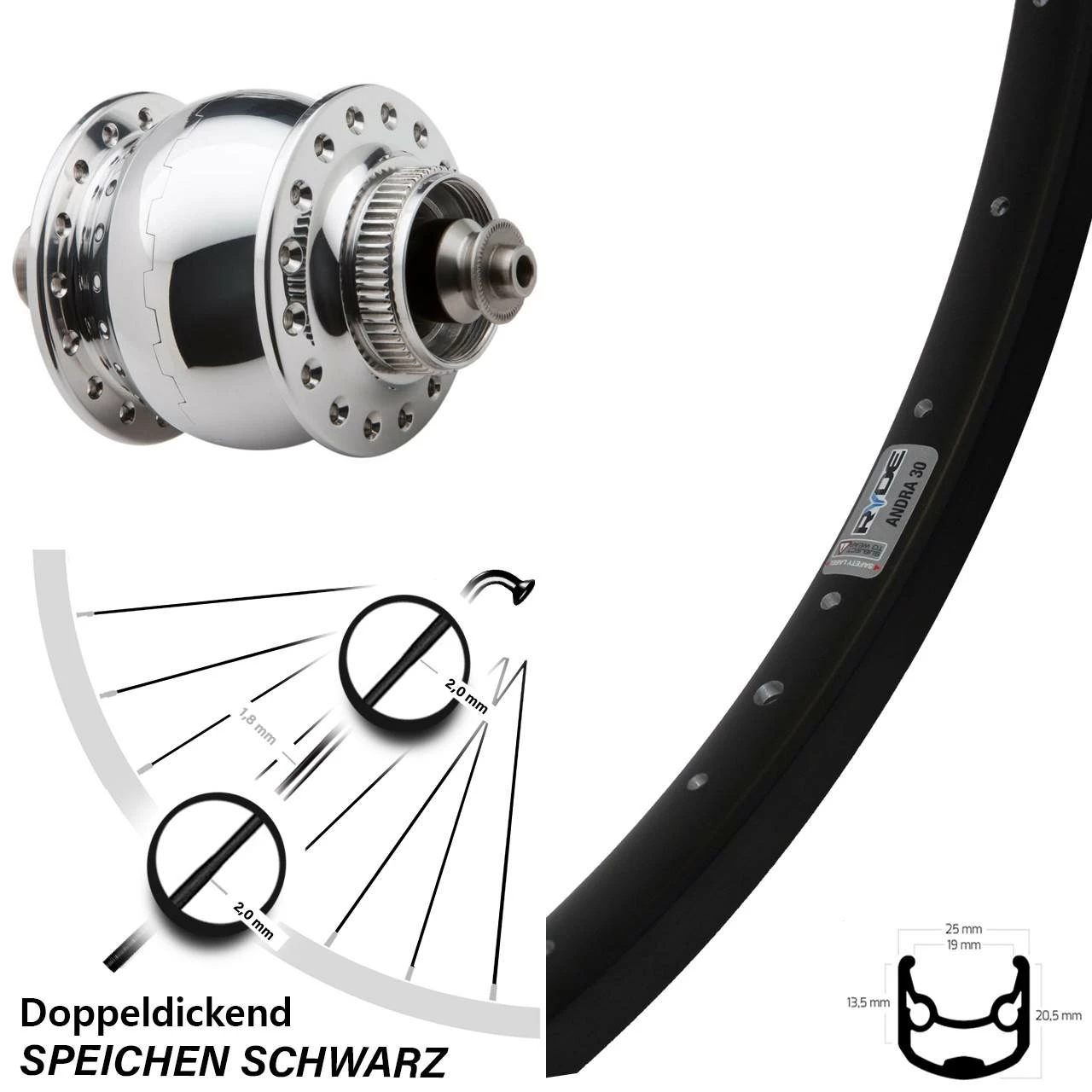 - Vorderrad 28 Zoll, 29 Zoll Ryde Andra 30 Disc schwarz mit Nabendynamo SON delux silbern