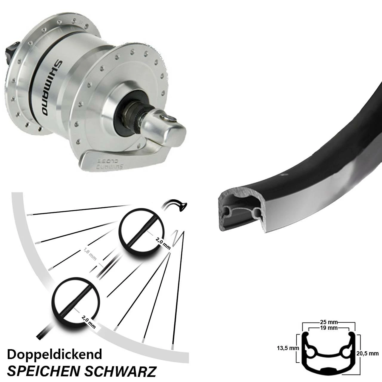 - Nabendynamo: Shimano DH-3N72 silbern – besonders leichtlĂ€ufig