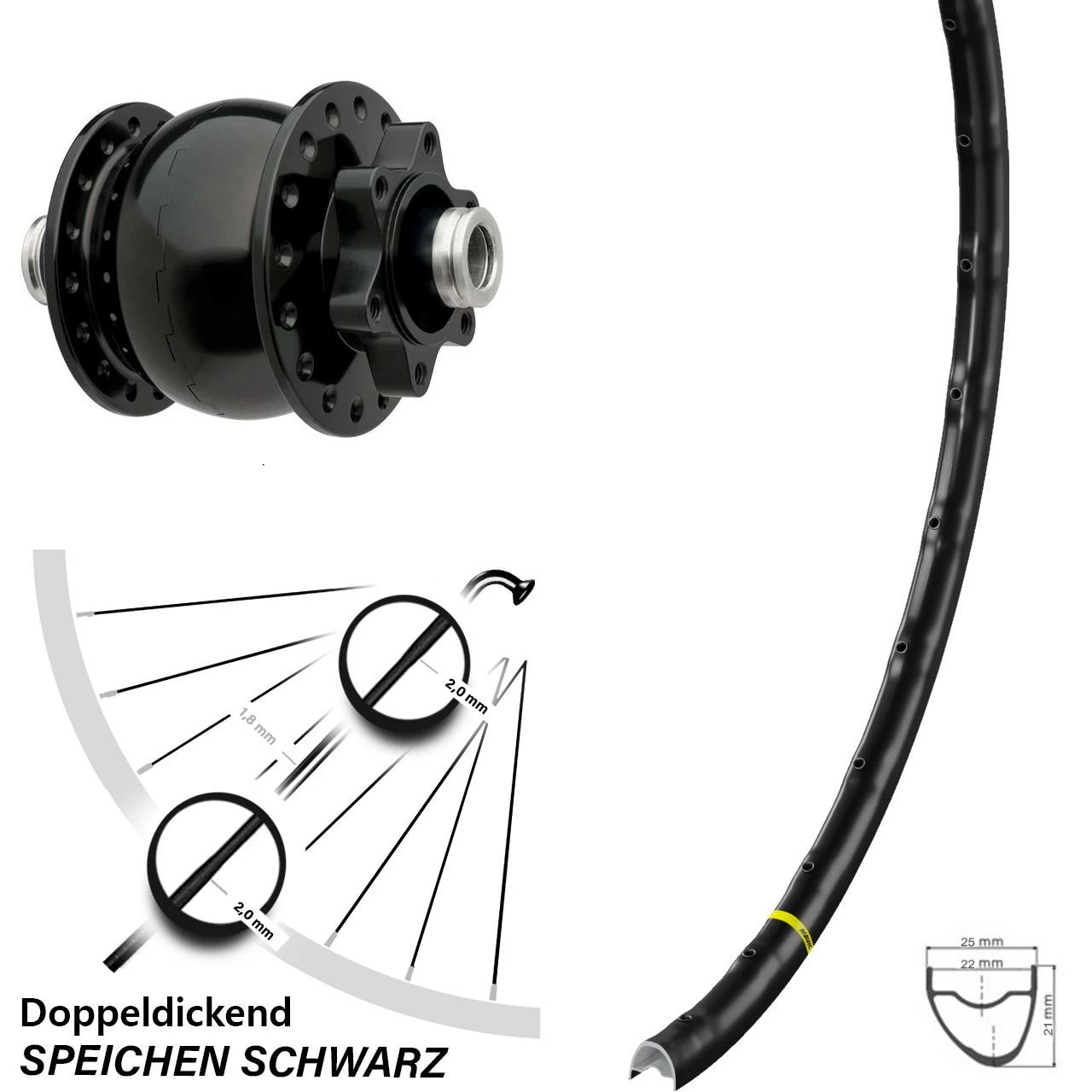 - Vorderrad 28 Zoll, 29 Zoll Mavic A 1022 schwarz mit Nabendynamo SON 28-12 schwarz